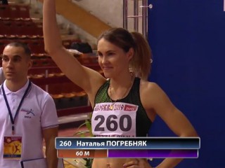 Ниже - в полном видео "Русской зимы-2019", финальный женский забег на 60 метров с участием Натальи Погребняк начинается с 2:20:40.
